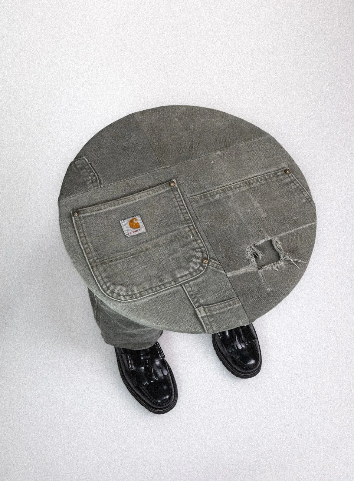 In April, 2023 Pitter Patter showed work at SOHO Gallery, Lume Studios. Showing 2 pieces featuring Carhartt work pants & vintage painter pants.
