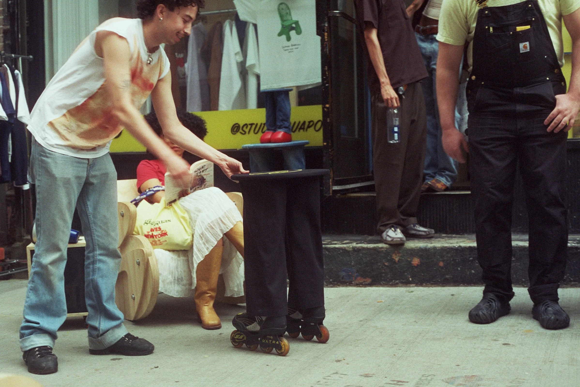 This collaboartive sculpture with artist and designer Matt Pecina features a pair of vintage roller blades and STUDIO GUAPO branding embroidered on the top. It was displayed at the guapo street market in april, 2023. The piece was later sold on BASIC.SPACE as part of Matt Pecina’s Furniture mix tape “LOCAL DELIVERY”.